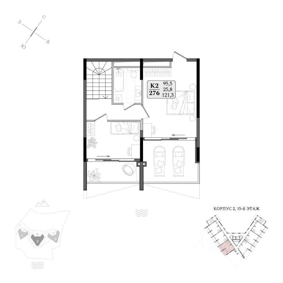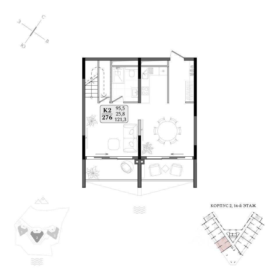 В комплексе представлена широкая линейка планировочных решений от студий до двухуровневых пентхаусов на последних этажах.