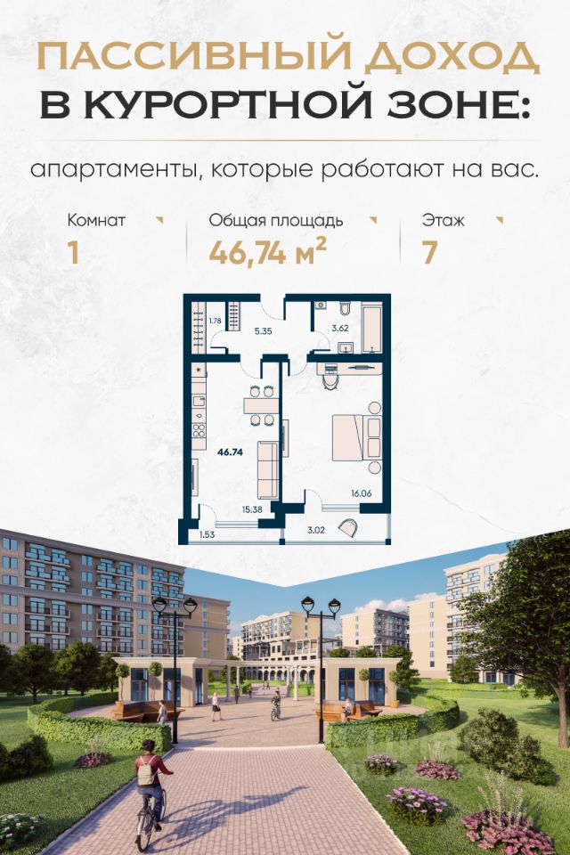 Апартаменты у моря Новая Керкинтида с гарантированной доходностью и рассрочкой. Надёжный способ сохранить капитал и получать пассивный доход — курортная недвижимость на первой линии у моря. Апарт-комплекс в экологически чистом районе Евпатории — это инвестиция, которая работает круглый год. Главные преимущества: Первая береговая линия Гарантированный пассивный доход Возможность отдыха в собственных апартаментах Рассрочка до 90% — без переплат Безопасная сделка через эскроу-счёт Почему это выгодно: Район с высоким спросом на аренду — Евпатория стабильно входит в топ направлений семейного и оздоровительного туризма. Цены на курортную недвижимость в Крыму растут — вы успеваете купить до следующей волны удорожания. Формат "отдых плюс доход" — апартаменты можно сдавать через управляющую компанию или использовать самостоятельно. Полностью готовая среда — магазины, кафе, рестораны, прогулочные зоны, ландшафтный парк, двор без машин, спортивные и детские площадки. Вид на море уже с 4 этажа — ощущение курорта не только в инфраструктуре, но и в каждом окне. Для спокойной старости или будущего семьи: Комплекс подойдёт тем, кто хочет иметь надёжный резерв на случай любых сценариев — для себя, детей, внуков или просто как подушку безопасности. Срок сдачи: IV квартал 2026 года. Покупка без скрытых комиссий, с понятной рассрочкой и прозрачными условиями.