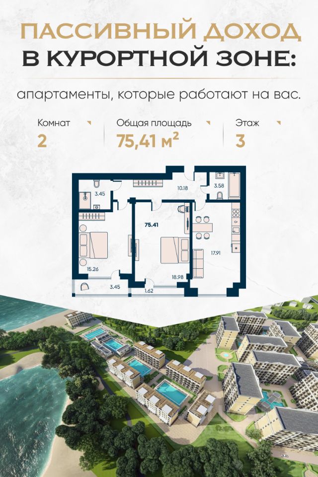 Апартаменты у моря Новая Керкинтида с гарантированной доходностью и рассрочкой. Надёжный способ сохранить капитал и получать пассивный доход — курортная недвижимость на первой линии у моря. Апарт-комплекс в экологически чистом районе Евпатории — это инвестиция, которая работает круглый год. Главные преимущества: Первая береговая линия Гарантированный пассивный доход Возможность отдыха в собственных апартаментах Рассрочка до 90% — без переплат Безопасная сделка через эскроу-счёт Почему это выгодно: Район с высоким спросом на аренду — Евпатория стабильно входит в топ направлений семейного и оздоровительного туризма. Цены на курортную недвижимость в Крыму растут — вы успеваете купить до следующей волны удорожания. Формат "отдых плюс доход" — апартаменты можно сдавать через управляющую компанию или использовать самостоятельно. Полностью готовая среда — магазины, кафе, рестораны, прогулочные зоны, ландшафтный парк, двор без машин, спортивные и детские площадки. Вид на море уже с 4 этажа — ощущение курорта не только в инфраструктуре, но и в каждом окне. Для спокойной старости или будущего семьи: Комплекс подойдёт тем, кто хочет иметь надёжный резерв на случай любых сценариев — для себя, детей, внуков или просто как подушку безопасности. Срок сдачи: IV квартал 2026 года. Покупка без скрытых комиссий, с понятной рассрочкой и прозрачными условиями.