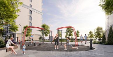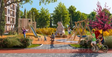 Полностью готовая среда — магазины, кафе, рестораны, прогулочные зоны, ландшафтный парк, двор без машин, спортивные и детские площадки.