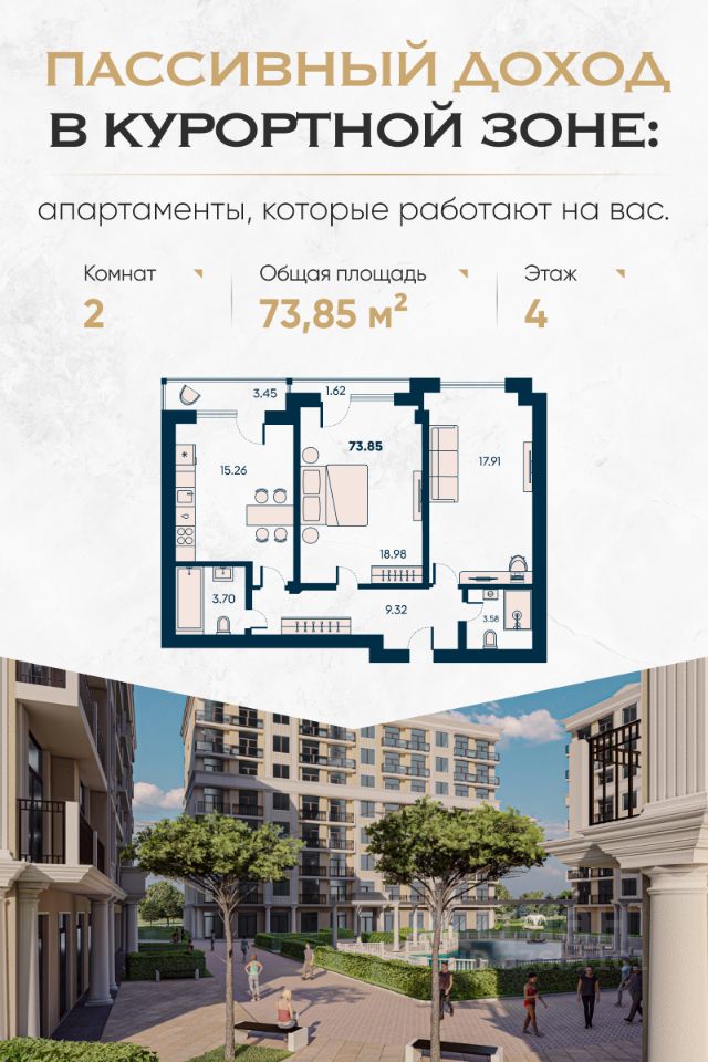 Апартаменты у моря Новая Керкинтида с гарантированной доходностью и рассрочкой. Надёжный способ сохранить капитал и получать пассивный доход — курортная недвижимость на первой линии у моря. Апарт-комплекс в экологически чистом районе Евпатории — это инвестиция, которая работает круглый год. Главные преимущества: Первая береговая линия Гарантированный пассивный доход Возможность отдыха в собственных апартаментах Рассрочка до 90% — без переплат Безопасная сделка через эскроу-счёт Почему это выгодно: Район с высоким спросом на аренду — Евпатория стабильно входит в топ направлений семейного и оздоровительного туризма. Цены на курортную недвижимость в Крыму растут — вы успеваете купить до следующей волны удорожания. Формат "отдых плюс доход" — апартаменты можно сдавать через управляющую компанию или использовать самостоятельно. Полностью готовая среда — магазины, кафе, рестораны, прогулочные зоны, ландшафтный парк, двор без машин, спортивные и детские площадки. Вид на море уже с 4 этажа — ощущение курорта не только в инфраструктуре, но и в каждом окне. Для спокойной старости или будущего семьи: Комплекс подойдёт тем, кто хочет иметь надёжный резерв на случай любых сценариев — для себя, детей, внуков или просто как подушку безопасности. Срок сдачи: IV квартал 2026 года. Покупка без скрытых комиссий, с понятной рассрочкой и прозрачными условиями.