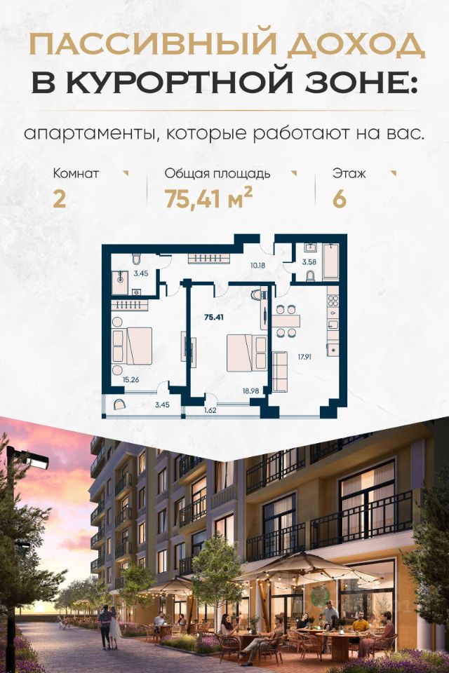 Апартаменты у моря Новая Керкинтида с гарантированной доходностью и рассрочкой. Надёжный способ сохранить капитал и получать пассивный доход — курортная недвижимость на первой линии у моря. Апарт-комплекс в экологически чистом районе Евпатории — это инвестиция, которая работает круглый год. Главные преимущества: Первая береговая линия Гарантированный пассивный доход Возможность отдыха в собственных апартаментах Рассрочка до 90% — без переплат Безопасная сделка через эскроу-счёт Почему это выгодно: Район с высоким спросом на аренду — Евпатория стабильно входит в топ направлений семейного и оздоровительного туризма. Цены на курортную недвижимость в Крыму растут — вы успеваете купить до следующей волны удорожания. Формат "отдых плюс доход" — апартаменты можно сдавать через управляющую компанию или использовать самостоятельно. Полностью готовая среда — магазины, кафе, рестораны, прогулочные зоны, ландшафтный парк, двор без машин, спортивные и детские площадки. Вид на море уже с 4 этажа — ощущение курорта не только в инфраструктуре, но и в каждом окне. Для спокойной старости или будущего семьи: Комплекс подойдёт тем, кто хочет иметь надёжный резерв на случай любых сценариев — для себя, детей, внуков или просто как подушку безопасности. Срок сдачи: IV квартал 2026 года. Покупка без скрытых комиссий, с понятной рассрочкой и прозрачными условиями.