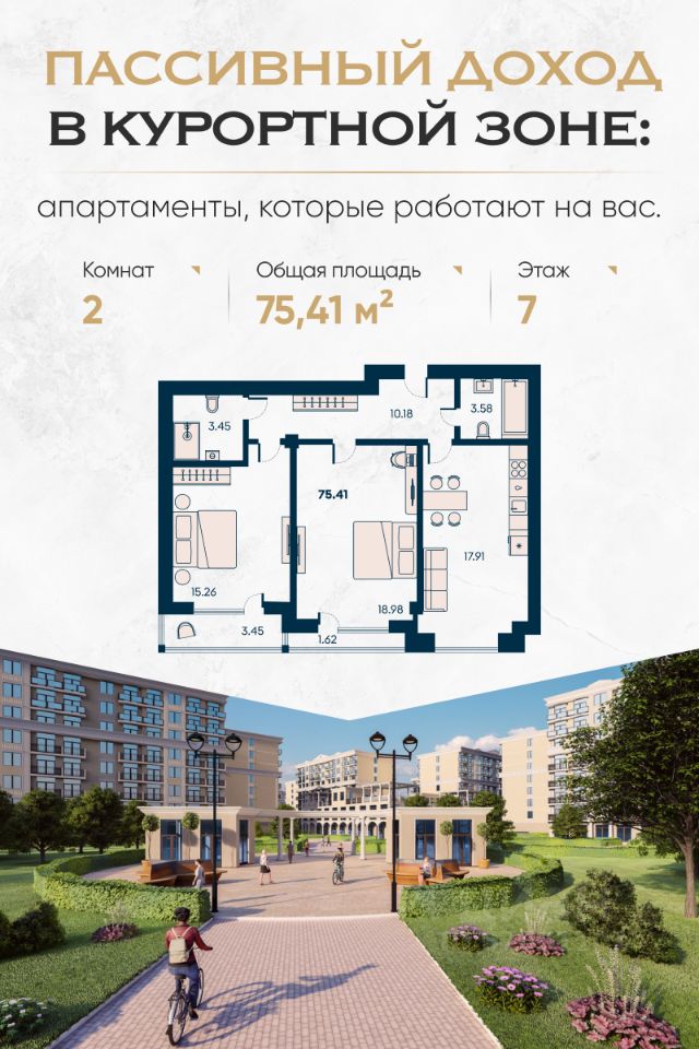 Формат "отдых плюс доход" — апартаменты можно сдавать через управляющую компанию или использовать самостоятельно.