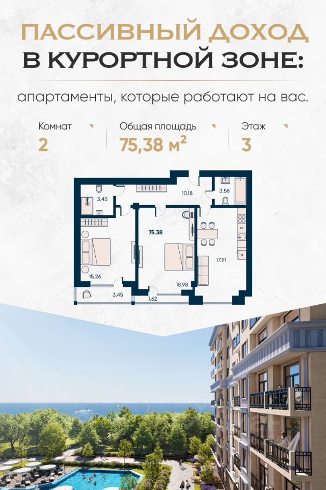 Апартаменты у моря Новая Керкинтида с гарантированной доходностью и рассрочкой. Надёжный способ сохранить капитал и получать пассивный доход — курортная недвижимость на первой линии у моря. Апарт-комплекс в экологически чистом районе Евпатории — это инвестиция, которая работает круглый год. Главные преимущества: Первая береговая линия Гарантированный пассивный доход Возможность отдыха в собственных апартаментах Рассрочка до 90% — без переплат Безопасная сделка через эскроу-счёт Почему это выгодно: Район с высоким спросом на аренду — Евпатория стабильно входит в топ направлений семейного и оздоровительного туризма. Цены на курортную недвижимость в Крыму растут — вы успеваете купить до следующей волны удорожания. Формат "отдых плюс доход" — апартаменты можно сдавать через управляющую компанию или использовать самостоятельно. Полностью готовая среда — магазины, кафе, рестораны, прогулочные зоны, ландшафтный парк, двор без машин, спортивные и детские площадки. Вид на море уже с 4 этажа — ощущение курорта не только в инфраструктуре, но и в каждом окне. Для спокойной старости или будущего семьи: Комплекс подойдёт тем, кто хочет иметь надёжный резерв на случай любых сценариев — для себя, детей, внуков или просто как подушку безопасности. Срок сдачи: IV квартал 2026 года. Покупка без скрытых комиссий, с понятной рассрочкой и прозрачными условиями.