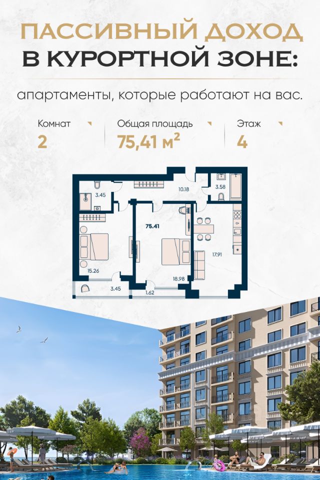 Апартаменты у моря Новая Керкинтида с гарантированной доходностью и рассрочкой. Надёжный способ сохранить капитал и получать пассивный доход — курортная недвижимость на первой линии у моря. Апарт-комплекс в экологически чистом районе Евпатории — это инвестиция, которая работает круглый год. Главные преимущества: Первая береговая линия Гарантированный пассивный доход Возможность отдыха в собственных апартаментах Рассрочка до 90% — без переплат Безопасная сделка через эскроу-счёт Почему это выгодно: Район с высоким спросом на аренду — Евпатория стабильно входит в топ направлений семейного и оздоровительного туризма. Цены на курортную недвижимость в Крыму растут — вы успеваете купить до следующей волны удорожания. Формат "отдых плюс доход" — апартаменты можно сдавать через управляющую компанию или использовать самостоятельно. Полностью готовая среда — магазины, кафе, рестораны, прогулочные зоны, ландшафтный парк, двор без машин, спортивные и детские площадки. Вид на море уже с 4 этажа — ощущение курорта не только в инфраструктуре, но и в каждом окне. Для спокойной старости или будущего семьи: Комплекс подойдёт тем, кто хочет иметь надёжный резерв на случай любых сценариев — для себя, детей, внуков или просто как подушку безопасности. Срок сдачи: IV квартал 2026 года. Покупка без скрытых комиссий, с понятной рассрочкой и прозрачными условиями.