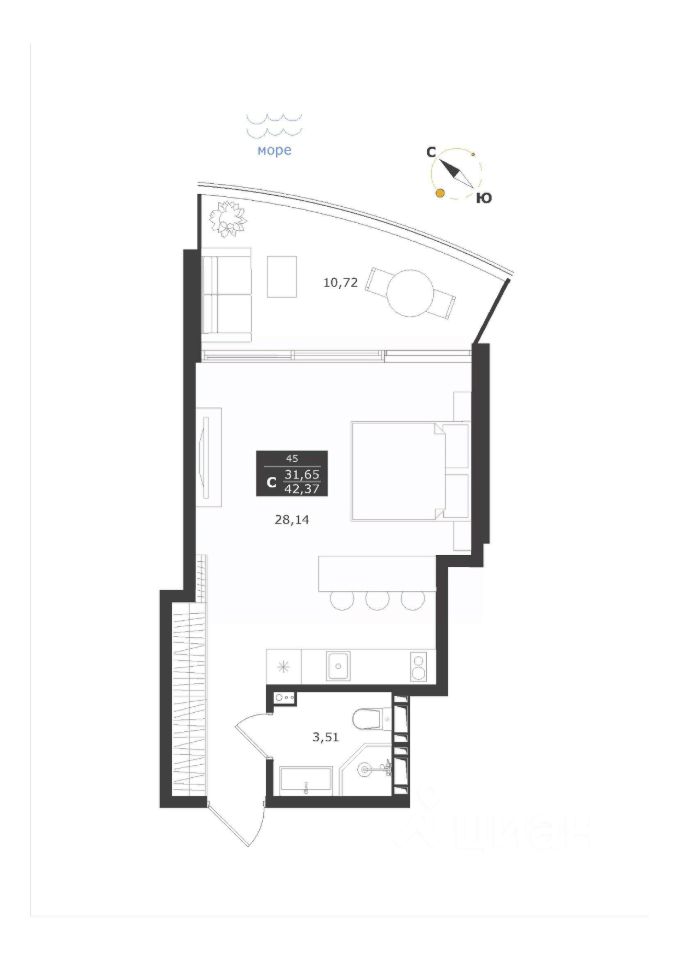 Продаются апартаменты общей площадью 42,37 м2 в премиальном гостиничном комплексе апартаментов "Паруса мечты" в историческом районе г. Алушты.