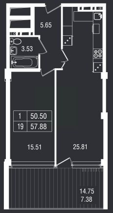 Общая площадь57,88 м²