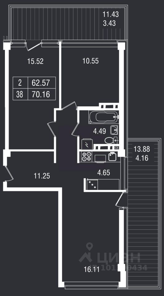 Общая площадь70,16 м²