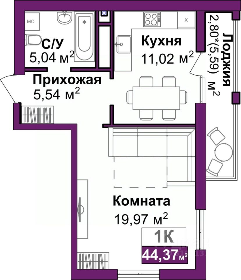 Просторная 1-комн. квартира с предчистовой отделкой в ЖМ "Город Мира" на 13 этаже. Общая площадь: 44.37 кв.м., жилая: 19.97 кв.м., площадь просторной кухни-столовой: 11.02 кв.м. Квартира угловая, идеально подойдет любителям тишины и панорамных видов. В квартире один балкон, один совмещенный санузел. Высота потолков 2.7 м.