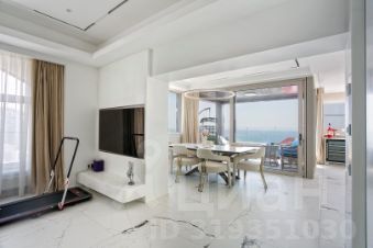 Изысканный современный дизайнерский ремонт не оставит равнодушным даже самого взыскательного покупателя . Техника премиум. Изумительный прямой вид на море !