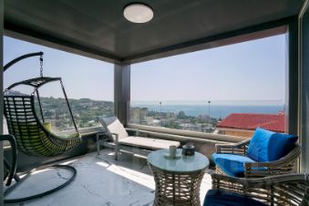 кухня-гостиная 60м ² с которой открывается панорамный вид на Набережную Ялты с выходом на террасу;