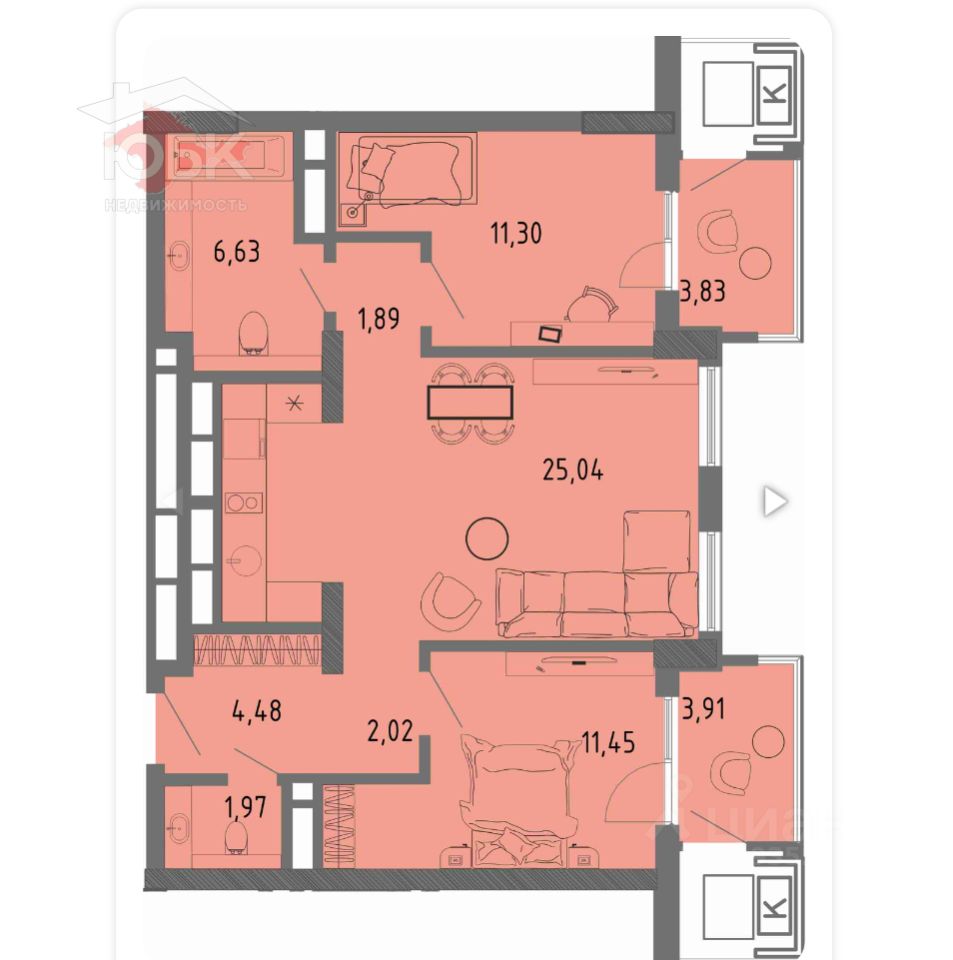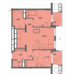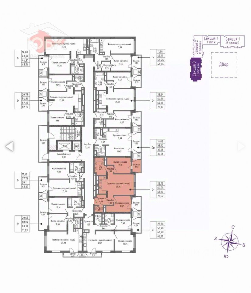 Обратите внимание, что площадь вместе с балконами гораздо больше 72.52 кв м