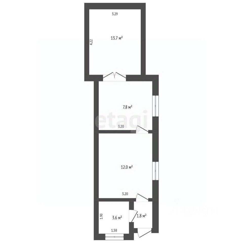 На площади 41 кв.м. удобно разместились 2 жилые комнаты, кухня и совмещенный санузел. Перед квартирой небольшой уютный дворик, огороженный заборчиком.