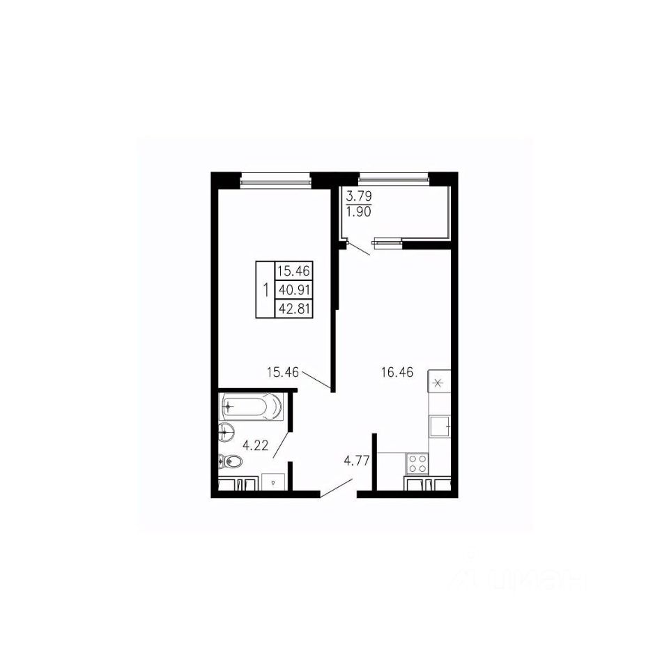 Общая площадь42,81 м²