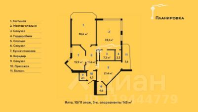Видовые трехкомнатные апартаменты площадью 145 м², расположенные на 10 этаже 11-этажного современного дома в самом сердце Ялты, вблизи Приморского парка и пляжа 2 минуты.