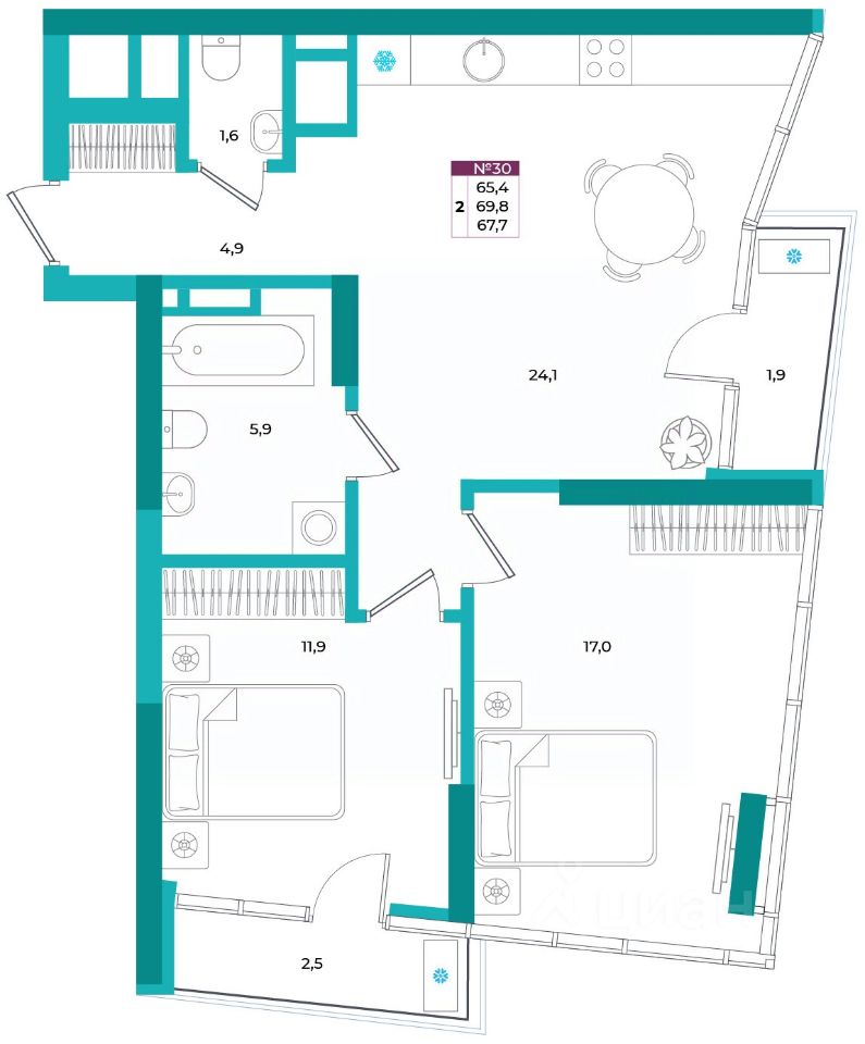Общая площадь67,7 м²
