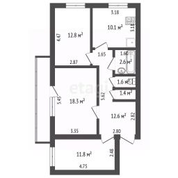 Площадь 71,2 кв.м.(жилая площадь 42,9 кв.м., кухня 10.1 кв.м.)