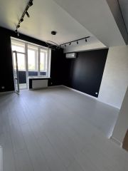 В квартире уже выполнен современный дизайнерский ремонт в стиле лофт, выполнена разводка электрики, установлен кондиционер. Необходимо только подобрать мебель и наслаждаться чудесным видом на горы с закрытого балкона.