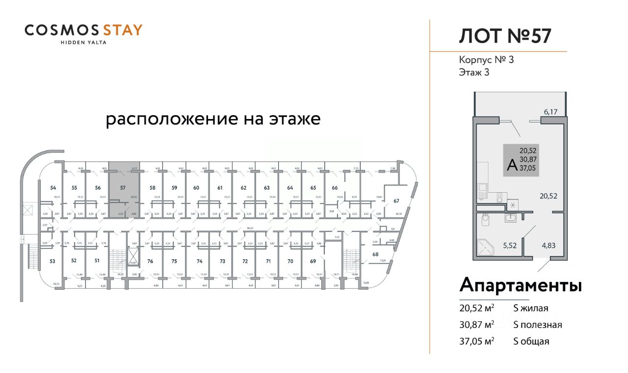 Продаются апартаменты от Застройщика в строящемся комплексе COSMOS STAY HIDDEN YALTA, под управлением ведущего отельера в России COSMOS HOTEL GROUP (COSMOS HOTEL GROUP  это Аккредитованная Управляющая компания международных гостиничных операторов).