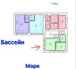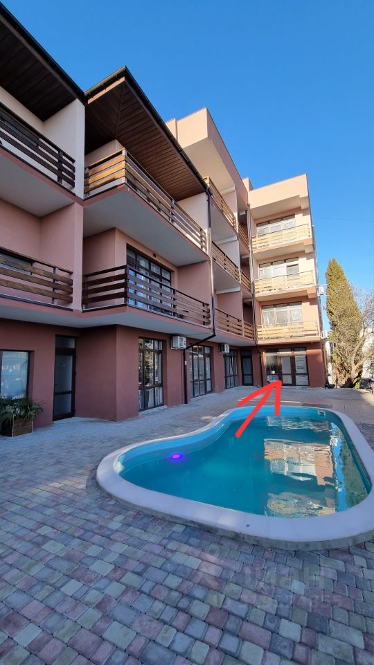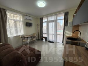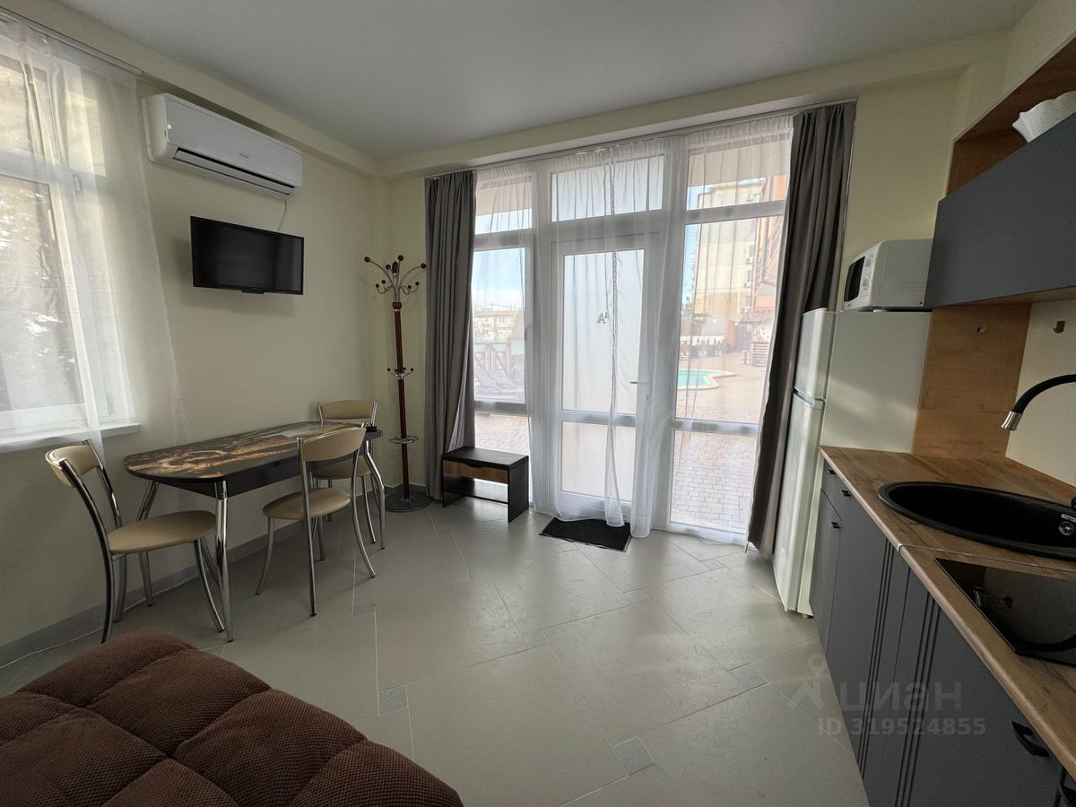 Полноценная 1-комнатная , на 1 этаже из 4х, общей площадью 23,8м², с мебелью и техникой. В квартире панорамные окна, смотрит на море и во двор на бассейн. Отопление- тёплый пол, кондиционер. Состоит из кухни-гостиной, спальни, санузла.