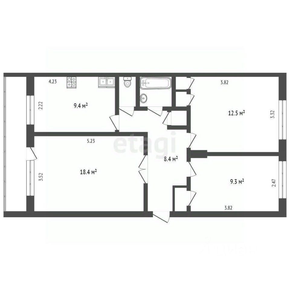 Квартира расположена на третьем этаже трехэтажного дома общей площадью 64 кв.м., жилая - 41 кв.м. и кухня 9.4 кв.м. + огромная лоджия.