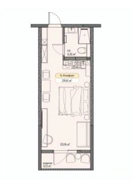 Жилая площадь: 26.48 кв.м, кухня - 2 кв.м. чистовая отделка. , окна выходят на улицу.