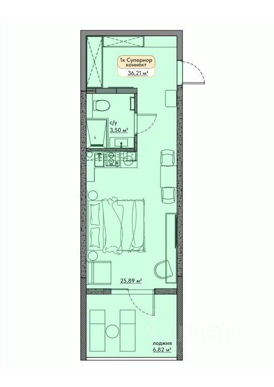 Жилая площадь: 29.39 кв.м, кухня - 2 кв.м. черновая отделка. , окна выходят на улицу.