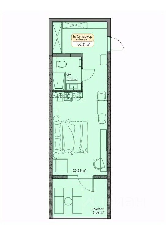 Жилая площадь: 29.39 кв.м, кухня - 2 кв.м. черновая отделка. , окна выходят на улицу.