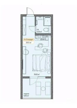 Жилая площадь: 22.35 кв.м, кухня - 5 кв.м. помещение требует ремонта. , окна выходят на улицу.