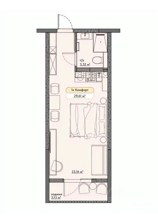 ID: 125904. Общая площадь 29.61 кв.м.