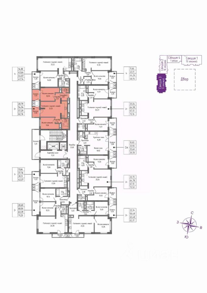 Продаётся квартира  80  площадью 62,76 м2 в новом ЖК СОК