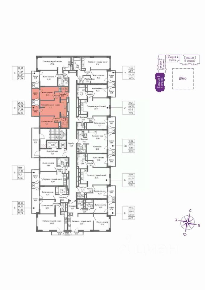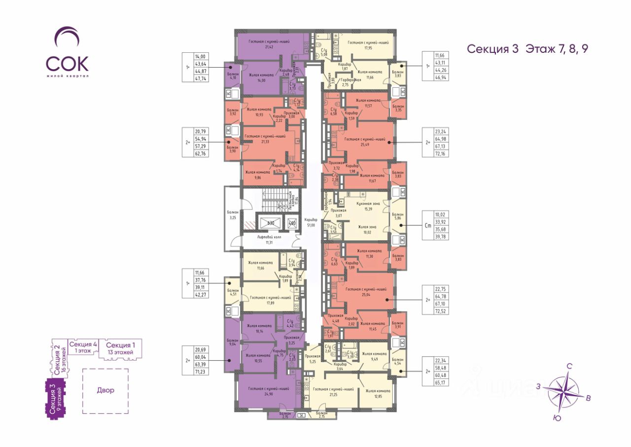 Продаётся квартира 80 площадью 62,76 м2 в новом ЖК СОК