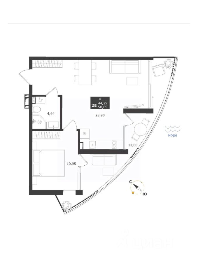 Продаются апартаменты общей площадью 58,09 м2 в премиальном гостиничном комплексе апартаментов "Паруса мечты" в историческом районе г. Алушты.