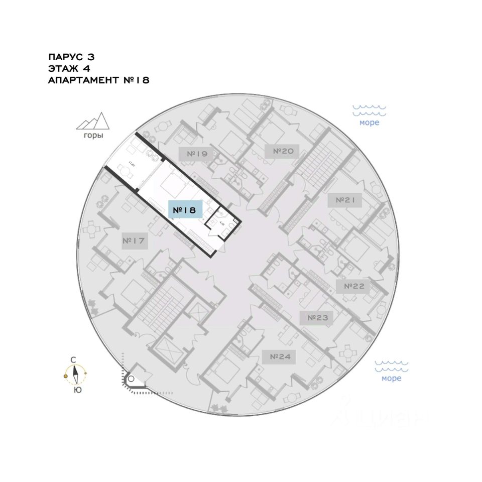 Продаются апартаменты общей площадью 42,79 м2 в премиальном гостиничном комплексе апартаментов "Паруса мечты" в историческом районе г. Алушты.
