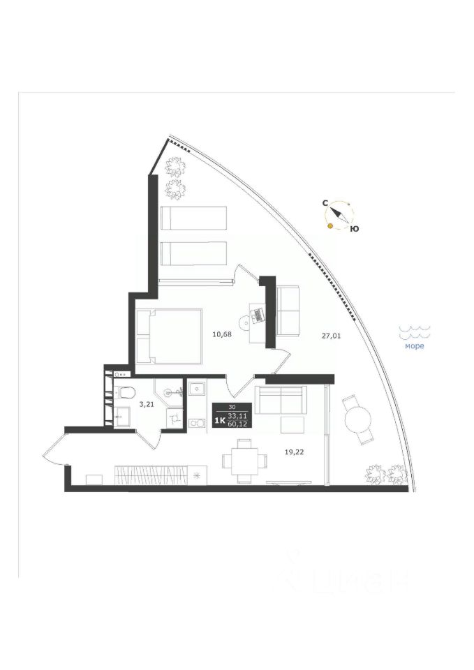 Продаются апартаменты общей площадью 60,12 м2 в премиальном гостиничном комплексе апартаментов "Паруса мечты" в историческом районе г. Алушты.