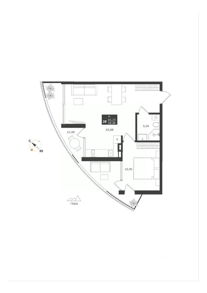Общая площадь58,28 м²