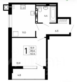 Общая площадь:40.4 м.кв.