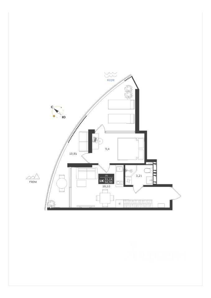 Продаются апартаменты общей площадью 50,99 м2 в премиальном гостиничном комплексе апартаментов "Паруса мечты" в историческом районе г. Алушты.