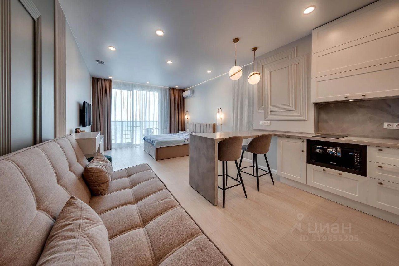 В квартире сделан дизайнерский ремонт, что создает уникальную атмосферу уюта и комфорта. Просторные студийные апартаменты оснащены всем необходимым: современная мебель, качественная техника и продуманная планировка. Санузел совмещенный, оформлен в современном стиле. Из окон открывается потрясающая панорама на море. Есть балкон, где можно отдыхать и наслаждаться свежим воздухом и видом.