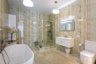 планировка: 2 спальни, просторная кухня-столовая 45.5 кв.м., 3 санузла, гардеробная, прихожая, терраса с барбекю.