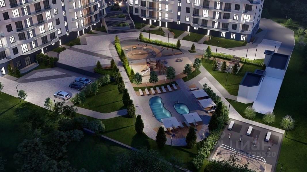 Насыщенная и развитая инфраструктура комплекса: 2 бассейна, стрит-ритейл, детские и спортивные площадки, библиотека, тренажерный зал, интерактивная детская комната, эксплуатируемая кровля - оранжерея.