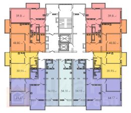 Общая площадь составляет 34,1 кв.м, жилая 17,45 кв.м, кухня 7,7 кв.м.