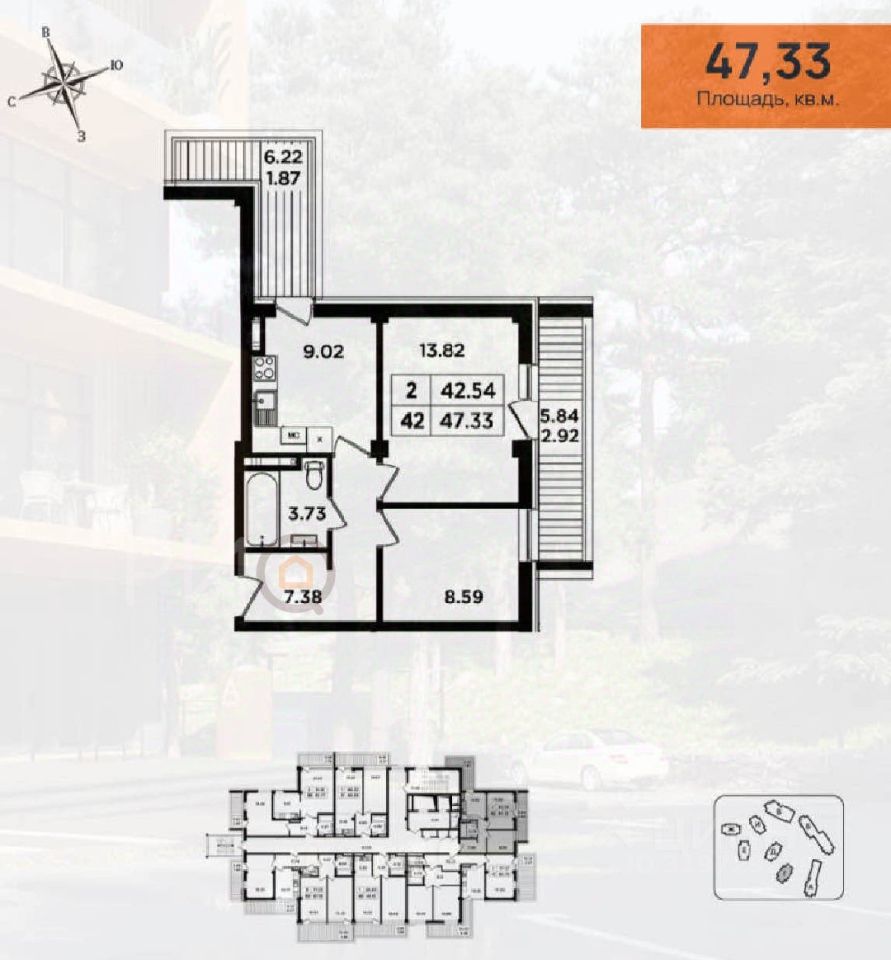 Продаётся уютная и светлая квартира 47 м², которая станет идеальным решением для