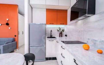 В апартаментах выполнен дизайнерский ремонт, который подчеркивает стиль и комфорт. Уютная кухня площадью 7 кв. м позволяет организовать пространство для приготовления и приема пищи. В квартире одна комната, объединенный санузел и выход на лоджию, а также балкон с видом на улицу.