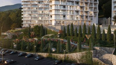 Башни спроектированы в едином современном стиле с выразительной архитектурной подсветкой, просторными входными группами и панорамными террасами. В комплексе — 413 апартаментов с открытыми террасами, откуда открываются виды на Чёрное море, скалы, набережную и зелёные холмы.