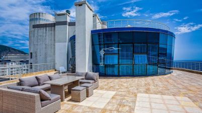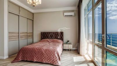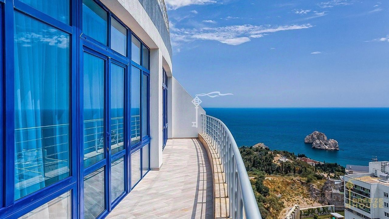 Пентхаус находится последнем этаже 8-этажного дома, площадью 132,5 м², плюс открытая терраса 174 м² с панорамным видом на море, горы, старинный Гурзуф, знаменитую гору Аю-даг, а также на скалы Адалары.