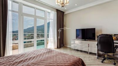 К продаже предлагается видовой эксклюзивный пентхаус 306,5 м² с завораживающими видами на море, скалы Адалары, гору Аю-Даг и горную гряду с виноградниками, расположенный в ЖК "Ришелье Шато" в Гурзуфе. Панорамная терраса является изюминкой этого пентхауса.