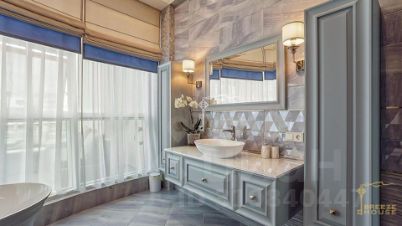 Пентхаус полностью готов к проживанию. Вся мебель ручной работы изготовлена по индивидуальному проекту под заказ, в спальнях шторы оснащены электроприводом, со стороны террасы на панорамных окнах установлены рольставни, кровати с подъёмным механизмом, ортопедический матрас Grether&Wells, столешница на кухне искусственный камень.