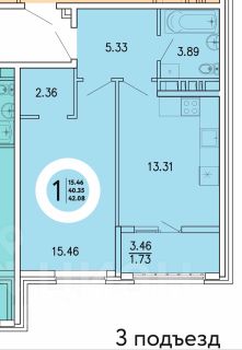 Продается однокомнатная квартира 42 м2 в жилом комплексе Просторы Крыма!!!