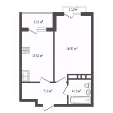 Общая площадь: 44.66 кв.м.